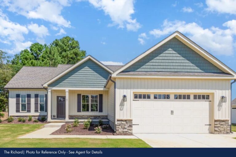 The Richard is a thoughtfully designed ranch-style home that blends open living with elegant details. Step through the welcoming foyer into a spacious living room, complete with a cozy gas fireplace that creates a warm and inviting atmosphere.