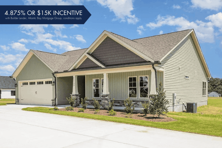 Builder Incentives Available! The Tyler Plan at 56 Bailey Boykin Road offers 3 bedrooms, 2 baths, and a split-bedroom ranch layout with open living spaces. Highlights include a gourmet kitchen with island, spa-like owner’s suite, screened porch, and a spacious 3-car garage.