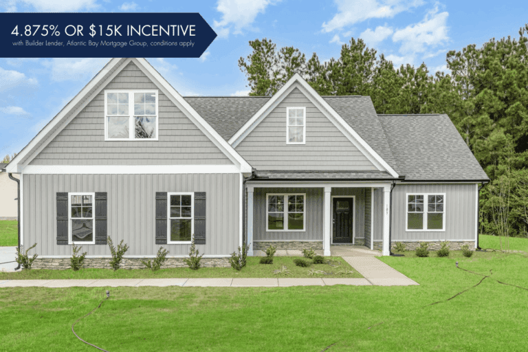 Builder Incentives Available! The Caleb 1.5-story plan offers open living with granite kitchen, spa-like owner’s suite, bonus room, 2-car garage, and modern smart-home convenience.